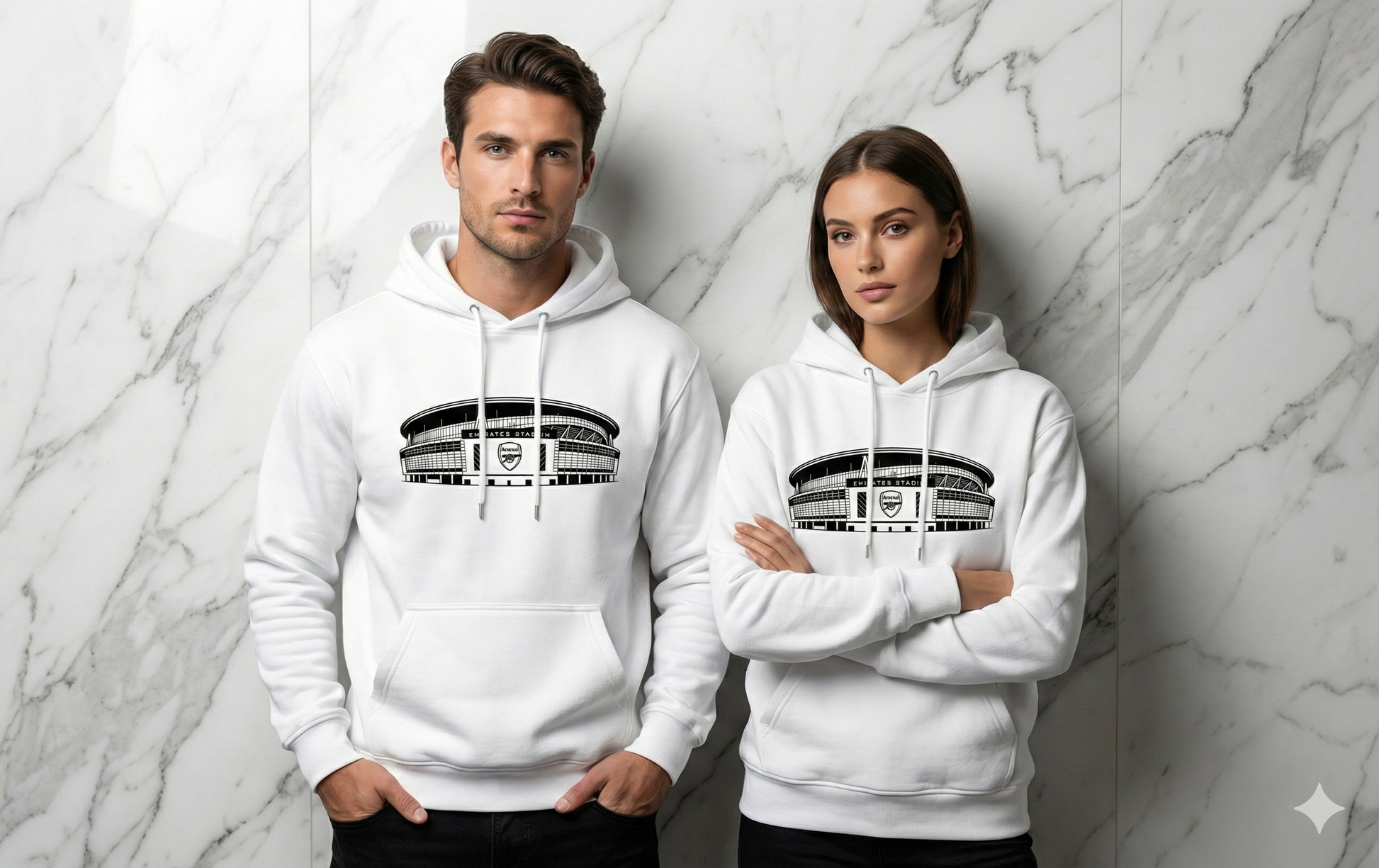 Wear your passion for the Gunners with this striking Emirates Stadium design tee. Crafted from soft, breathable organic cotton, it's perfect for match days or everyday wear. The iconic stadium graphic brings urban edge to your wardrobe while keeping comfort at the forefront. Show your Arsenal pride in style—because true supporters deserve quality that matches their dedication.